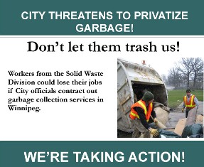 In July 2005, Winnipeg City Council approved the contracting out of all collection of solid waste in Winnipeg. Since 1999, city employees collected waste in the southern half of the city and Waste Management Inc collected in the north.