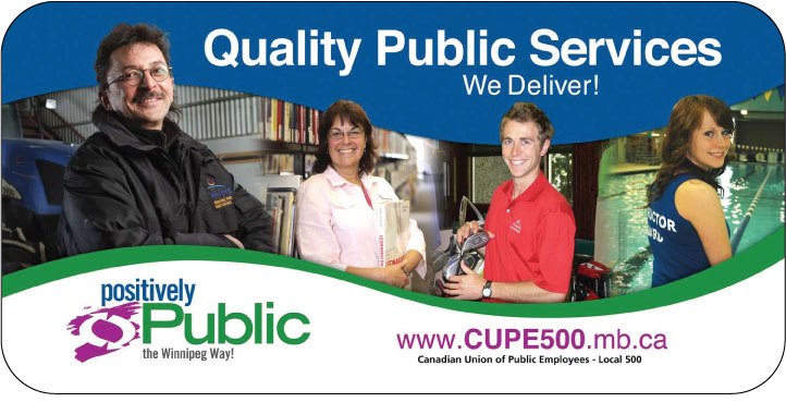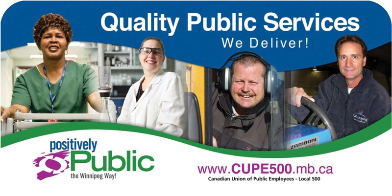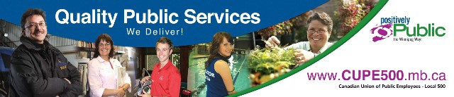 Local 500 has launched a multi-faceted four year campaign (with public information, direct action, lobbying of politicians), to profile city workers and expose the services they provide. We want Winnipeg to know that public services should be delivered by dedicated public employees who are acting in the best interests of the entire public. Part of our message to the public, is that strong public services create the quality of life we deserve in our city.